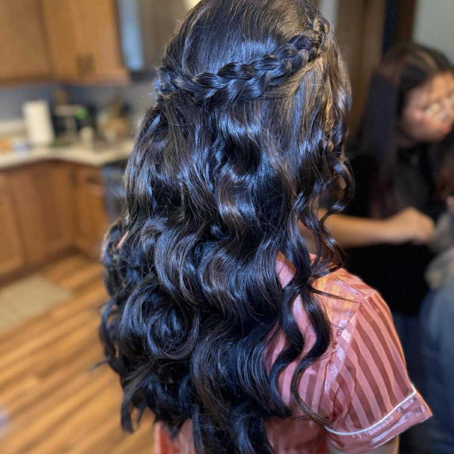 Custom styling for any occasion, including updos, curls, and half-up styles. Includes consultation, prep, and long-lasting finish.